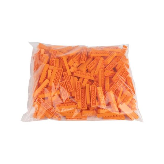 Brick with sixteen studs, double length compared to the classic 2×4. It permits you to strengthen large constructions. RAL colour: bright red orange 2008. Packed in bag of 250 pcs.