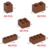 This colour set with different brick sizes is suited for creative building ideas. The set contains 300 bricks in the dimensions 1×1 (60 pcs), 1×2 (60 pcs), 1×4 (60 pcs), 2×2 (60 pcs) and 2×4 (60 pcs). RAL colour: signal brown 8002