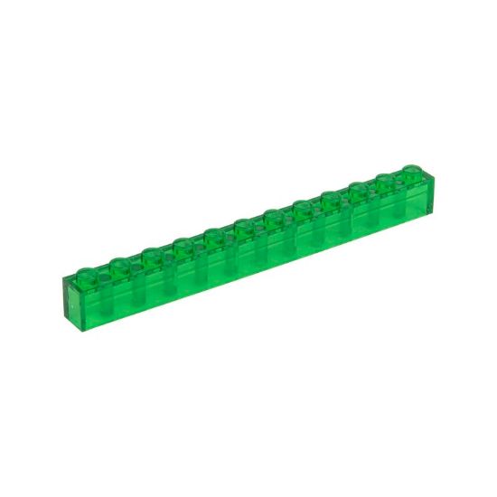 Brick with twelve inline studs, usable as long and solid load-bearing beam. RAL colour: signal green transparent 6032 TR