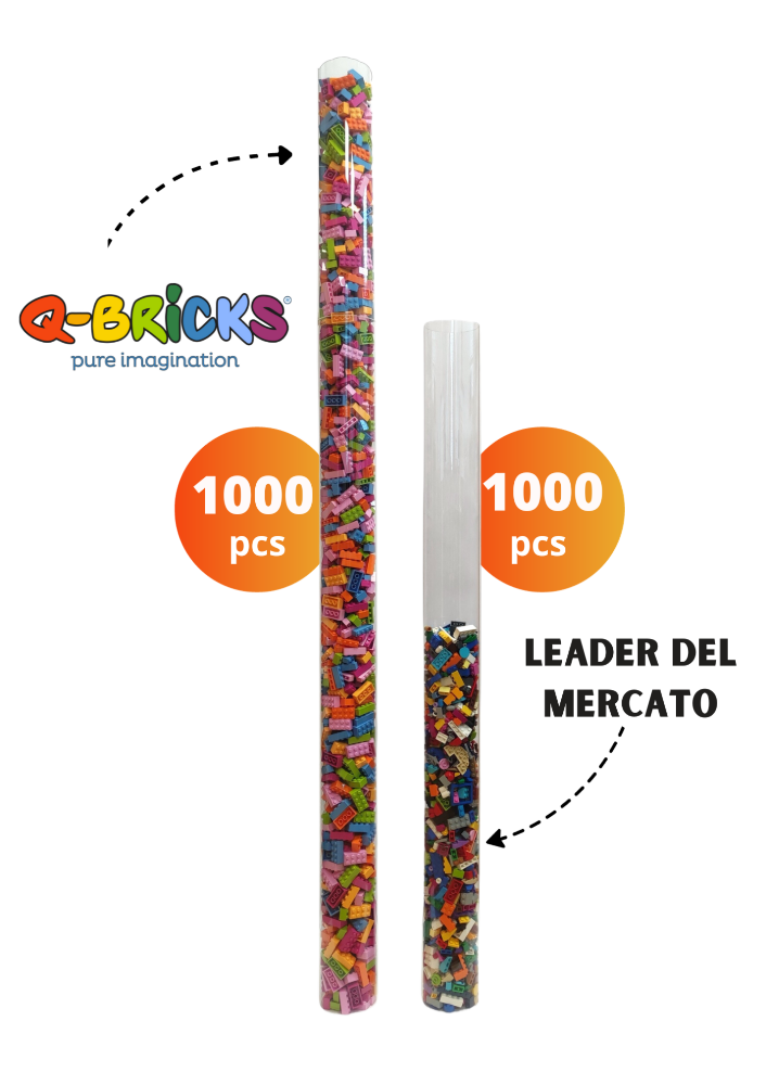 C’è di più! In Q-BRICKS abbiamo studiato e sviluppato il concetto di “quoziente di utilizzo”. Esso stabilisce la relazione tra il numero totale di bottoncini e il numero di pezzi in una confezione. Finalmente adesso è possibile sapere con certezza quanto potrai costruire!