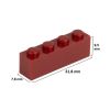 Il mattoncino con quattro borchie permette di realizzare pareti sottili o il completamento di strutture su mattoncini 2×4. RAL colore: bruno rosso 3011
