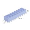 Il mattoncino con sedici borchie e lungo il doppio rispetto al mattoncino di base 2×4. Consente il rinforzo di grandi strutture. PANTONE colore: lavanda 2716