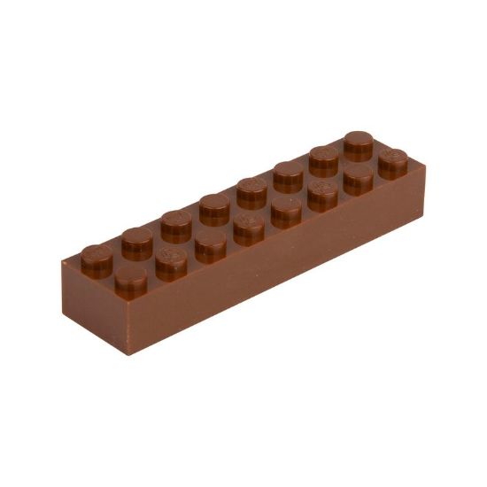 Il mattoncino con sedici borchie e lungo il doppio rispetto al mattoncino di base 2×4. Consente il rinforzo di grandi strutture. RAL colore: marrone segnale 8002
