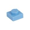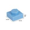 Die Platte mit einem Noppen ist die kleinste. Sie wird als Abschluss oder Ergänzung zu größeren Konstruktionen verwendet. Die 1×1 Platte eignet sich auch für Mosaikkompositionen. RAL colore: blu chiaro 5012