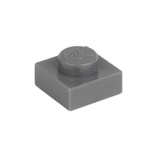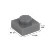 Die Platte mit einem Noppen ist die kleinste. Sie wird als Abschluss oder Ergänzung zu größeren Konstruktionen verwendet. Die 1×1 Platte eignet sich auch für Mosaikkompositionen. RAL colore: grigio scuro 7037