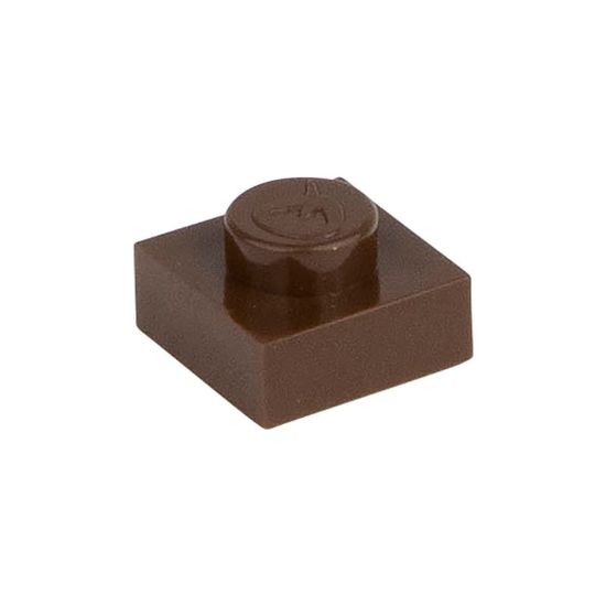 Die Platte mit einem Noppen ist die kleinste. Sie wird als Abschluss oder Ergänzung zu größeren Konstruktionen verwendet. Die 1×1 Platte eignet sich auch für Mosaikkompositionen. RAL colore: noce 8011