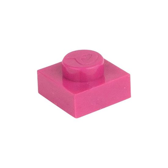 Die Platte mit einem Noppen ist die kleinste. Sie wird als Abschluss oder Ergänzung zu größeren Konstruktionen verwendet. Die 1×1 Platte eignet sich auch für Mosaikkompositionen. RAL colore: telemagenta 4010