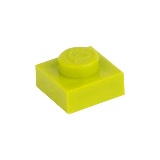 Die Platte mit einem Noppen ist die kleinste. Sie wird als Abschluss oder Ergänzung zu größeren Konstruktionen verwendet. Die 1×1 Platte eignet sich auch für Mosaikkompositionen. Rif. PANTONE colore: verde erba 383