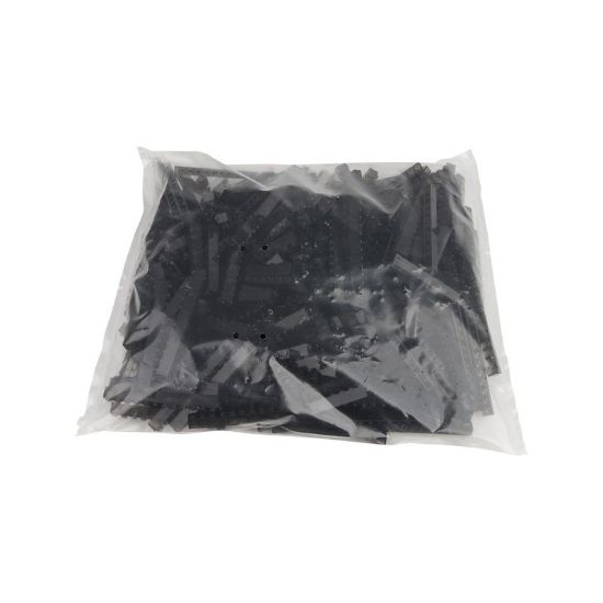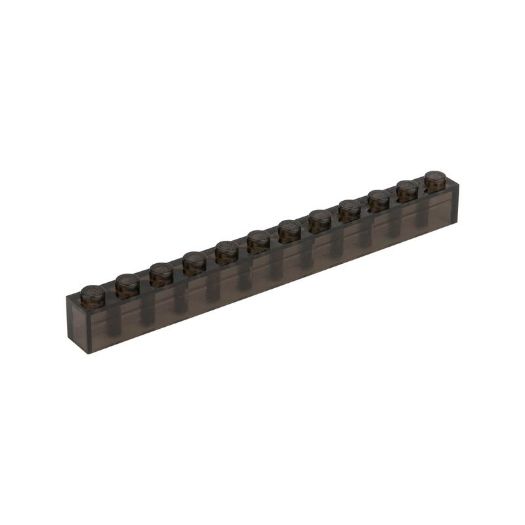 Il mattoncino con dodici borchie in fila e utilizzabile come elemento portante, lungo e solido, delle strutture. RAL colore: nero traffico transparent 9017 TR. Confezionato in busta da 250 pz .
