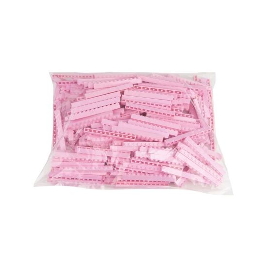 Il mattoncino con dodici borchie in fila e utilizzabile come elemento portante, lungo e solido, delle strutture. RAL colore: rosa chiaro 3015. Confezionato in busta da 250 pz .