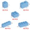 La scatola di un set di colori con mattoncini di diverse dimensioni e adatta per idee di costruzione creative. Il set contiene 300 mattoncini di dimensioni 1×1 (60 pezzi), 1×2 (60 pezzi), 1×4 (60 pezzi), 2×2 (60 pezzi) e 2×4 (60 pezzi). RAL colore: blu chiaro 5012