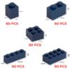 La scatola di un set di colori con mattoncini di diverse dimensioni e adatta per idee di costruzione creative. Il set contiene 300 mattoncini di dimensioni 1×1 (60 pezzi), 1×2 (60 pezzi), 1×4 (60 pezzi), 2×2 (60 pezzi) e 2×4 (60 pezzi). RAL colore: blu zaffiro 5003