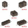 La scatola di un set di colori con mattoncini di diverse dimensioni e adatta per idee di costruzione creative. Il set contiene 300 mattoncini di dimensioni 1×1 (60 pezzi), 1×2 (60 pezzi), 1×4 (60 pezzi), 2×2 (60 pezzi) e 2×4 (60 pezzi). RAL colore: nero traffico transparent 9017 TR